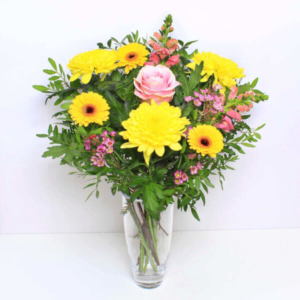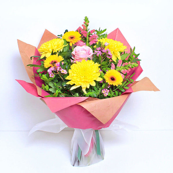Lift spirits and show your love this Mother’s Day with our beautifully bright and cheerful Jo-Jo bouquet. Featuring fresh, hand cut Antirhinum, Germini, Chrysanthemum and Roses, this collection of beautiful flowers will not disappoint!