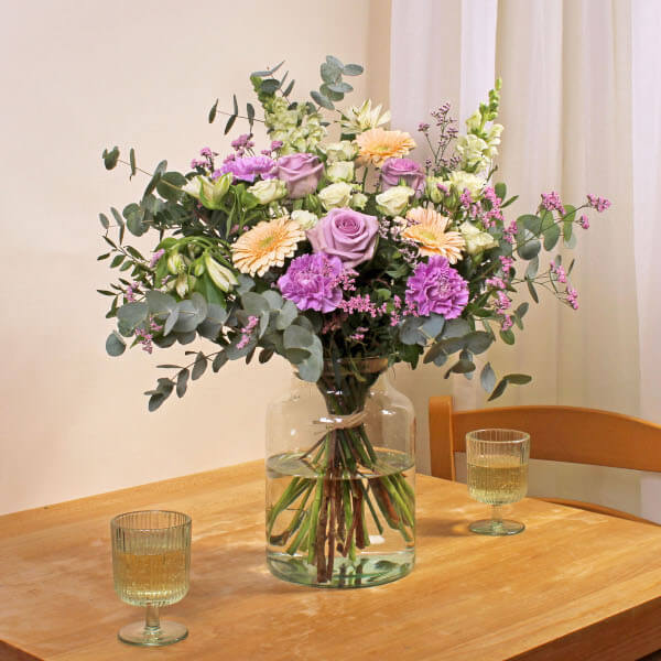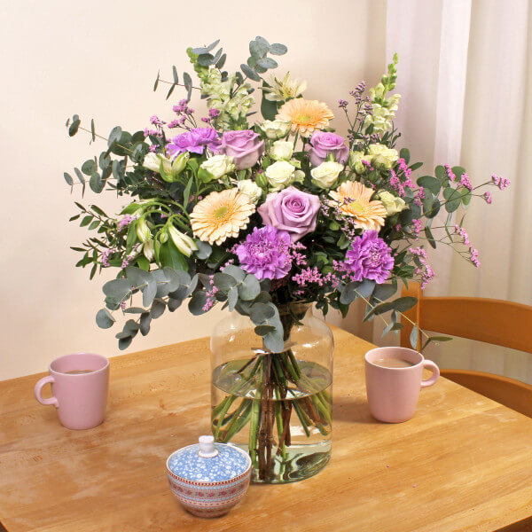 Featuring Chrysanthemum, Freesia and Roses this is a gloriously wild and wonderful bouquet with delicate textures and pastel shades, making it perfect for any special occasion. This bouquet will be handcrafted by an experienced florist, order for same day delivery by hand, or next day delivery via our courier.