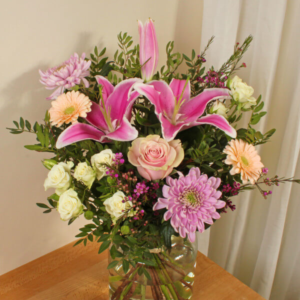 Handcrafted by our skilled local florists, the Remy bouquet is a stunning combination of Germini, Lilies and Roses that are hand cut and have a wonderful aroma. This bouquet will be handcrafted by an experienced florist, order for same day delivery by hand, or next day delivery via our courier.